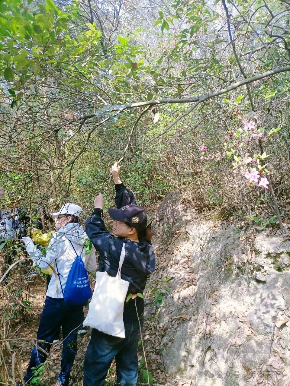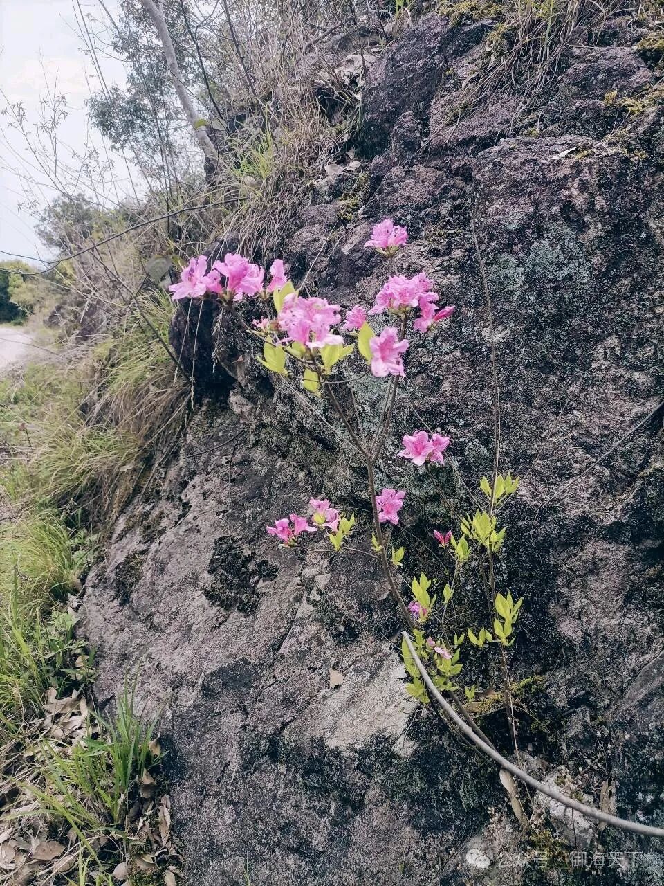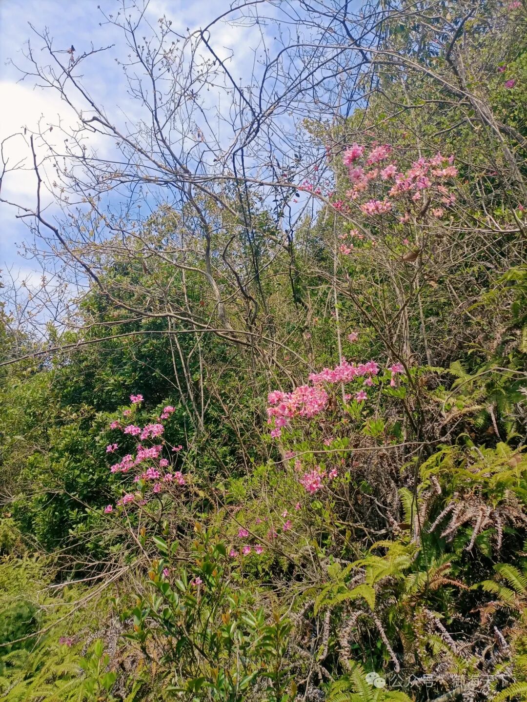 上山随处可见野杜鹃,红艳艳的映山红,在漫山绿里特别显眼,女同胞摘了几朵~