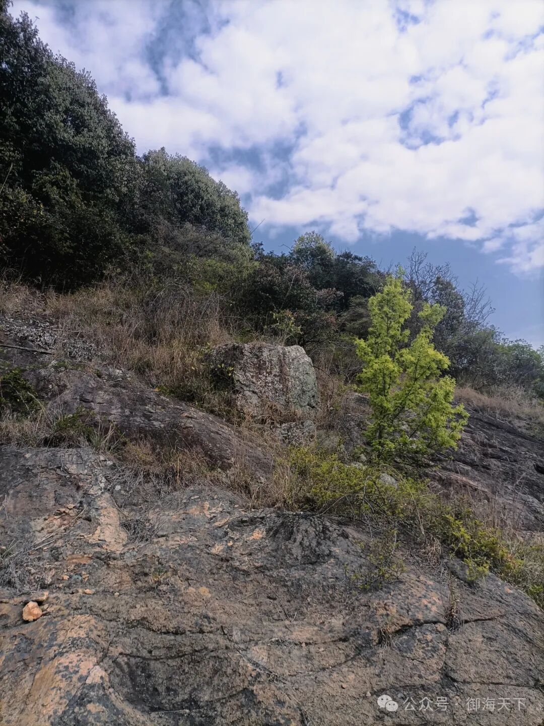 1.东铁桥闸口处小狮子口,上去到半山腰都有路(山坡上有村民种植的桔子树),难度不高,可日常登山健身(从山坡上可看到对面的观海平台)。  2.西铁桥边黄岩山,没有小狮子口海拔高,但是路比较野,山上也基本是原始状态(燃气站就建在这个山脚下,山脚下最近也有人在那开荒种地),今天爬的就是这座山。  今天从南面坡开始上山,在四区目前荒废的内湖边上(祝愿四区能够早日完工,别浪费了这好看的湖景!)  坡度岩石有点陡峭,不过就这一小段~  前面开道的是“愚安一隅”,非常好的一个帅哥,有美女看上的,欢迎联系哈~